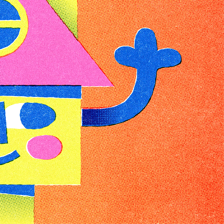 Expérimentation graphique autour de la texture des impressions risographiques, pour un festival fictif d’illustration. qui se veut graphiquement caractériel.